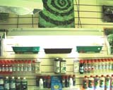 A demonstration Aeroponic 24 system. The trouble with demo hydro equipment is that everything grows so quickly. An extensive range of bottles on the left wall of the shop. Larger quantities are on the other side. A range of NFT trays in the shop. The outside of Esoteric Hydroponics in Martyr Road, Guildford and some old geezer carrying his shopping home from Sainsbury. The demo Aeroponic 24 system and the bottled nutrients. A view along the South facing front of the shop from the front door. There are plants in the window and boxes and demo lights underneath. Smaller items are kept in a cabinet. We know your type, sonny. Also shown is our growing range of highly reflective sheeting and some NFT equipment. This shelf on the right of the shop has 5 litre nutrient solutions. The demonstation system in the Esoteric basement (open to the public) growing tomatoes in the summer of 1998. A small hydro pod demo system in an unused fireplace in Esoteric Hydroponics. A previous webmaster in the Esoteric Hydroponic office. The basement with a new batch of tomatoes in the summer of 1998. The basement viewed from the stairs with extra reflective sheeting on the walls to increase efficiency. Possibly our first batch of Salvia divinorum, a sage-like herb. A closer view of the basement. Salvia divinorum growing in the acclaimed and exclusive Esoteric Hydroponic Hydro Pod system. Salvia divinorum growing in a Hydro Pod system located in the front of the shop where the Aeroponic 24 system used to be. A view of the Salvia divinorum from further away. No, its not dark in the shop, its the intensity of the air cooled lighting. A demo 48 pod system combining 2×24 pod systems. We can make larger systems if required. The custom made kabbalah mirror in the front of the hydro shop. We can contact the original craftsman of this mirror to produce this or other designs. Sacks of clay pebbles stored at Esoteric Hydroponics. We stock up to two tonnes of pebbles and we certainly get enough exercise moving them to and from storage.